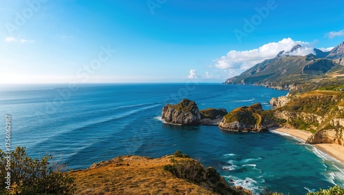 Fototapeta premium Stunning rugged shoreline with bays nestled among rocks and vibrant turquoise...