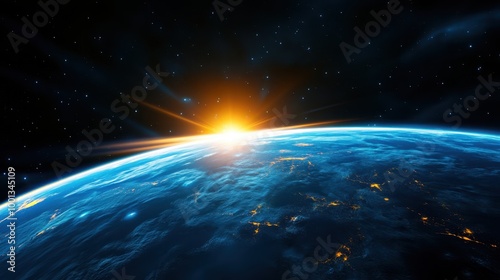© Vee, Fototapeta premium Stunning Satellite View of Earth at Sunrise