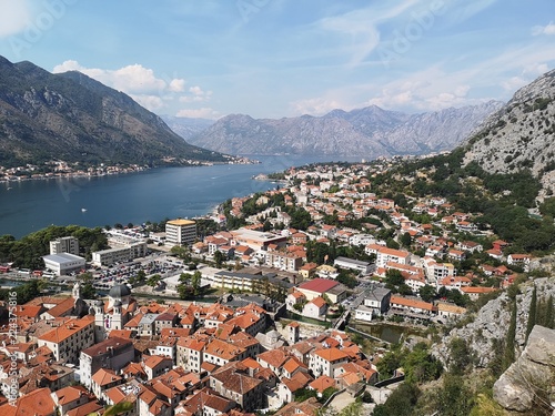 © Chris, Fototapeta premium Stunning Scenic Views from Various Stages of Climb up the Castle of San Giovanni in Kotor Montenegro containing Blue Sea and Mountain Views