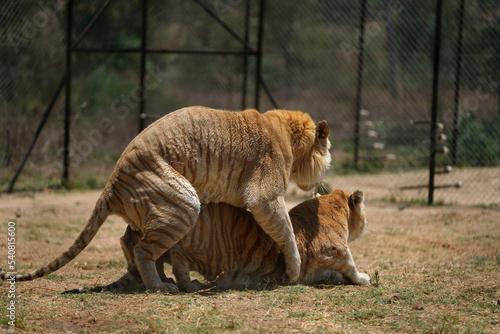Naklejka premium Stunning series of photos of 2 Tigers during an incredibly aggressive mating ritual, copulating for offspring. taken in vaalwater in South Africa during a Safari gamedrive, game walk