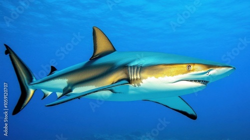 © 69, Fototapeta premium Stunning Shark Gliding Through Clear Blue Ocean Waters
