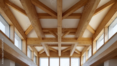 Obraz premium Stunning Showcase of Ceiling Timber Beams in a Contemporary Cross-Laminated...