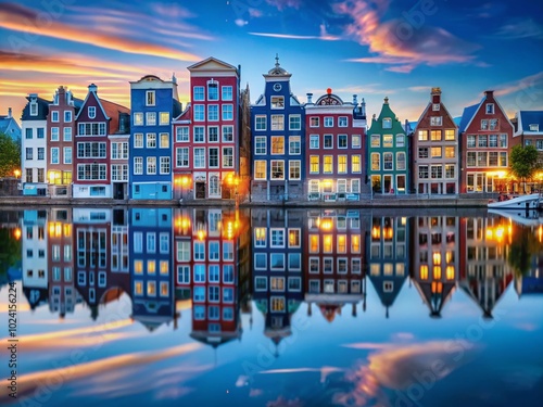 Obraz premium Stunning Skyline Outline of Netherlands, Vietnam, and Australia with Blue Buildings and Reflections in Tranquil