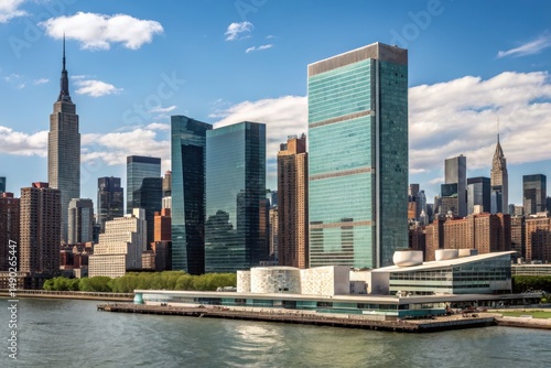 © Anusa, Obraz premium Stunning Skyline Overlooking United Nations Building and Cityscape
