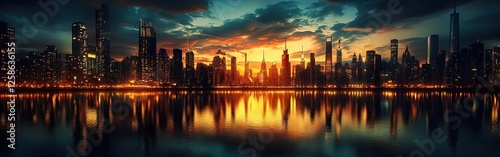 Fototapeta premium Stunning skyline reflecting on calm water.