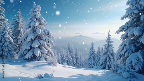 Naklejka premium Stunning Snow-Covered Carpathian Mountains Winter Landscape, 8K Snowfall Scene