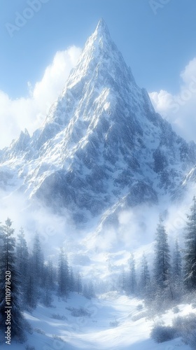 Obraz premium Stunning Snowy Mountain Peak, A Breathtaking Winter Landscape