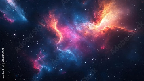 Naklejka premium Stunning Space Nebula and Galaxy, Vibrant Cosmic Scene for Science and Technology