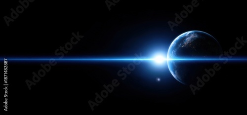 © Andrii Zastrozhnov, Fototapeta premium Stunning space view of earth's horizon with distant sunlight over dark sky