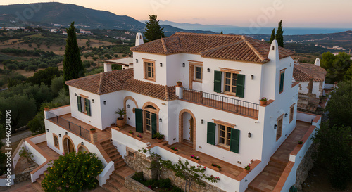 © Unip, Obraz premium Stunning Spanish Villa With Terracotta Roof Tiles Overlooking Rolling Hills