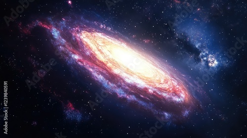 Fototapeta premium Stunning Spiral Galaxy in Deep Space with Bright Core and Colorful Nebulae,...