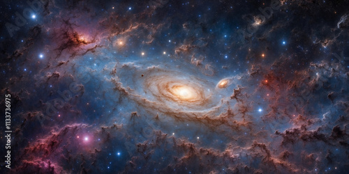 Fototapeta premium Stunning spiral galaxy surrounded by colorful cosmic clouds