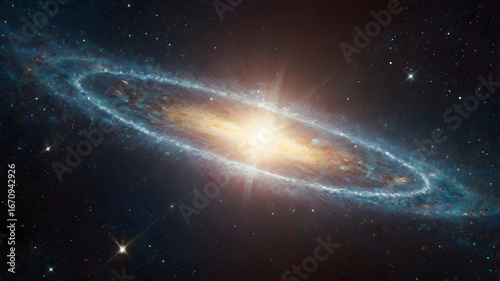 © Musfiqur, Obraz premium Stunning spiral galaxy with glowing rings in deep space