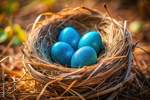 Obraz premium Stunning spring image: delicate blue eggs in a bird's nest, high-resolution...