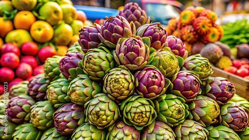 Fototapeta premium Stunning Stack of Artichokes on Market Stall