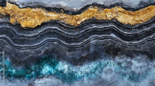 © Ilja, Fototapeta premium Stunning stone texture with liquid sapphire waves and sandy layers, accented by black marble veins.