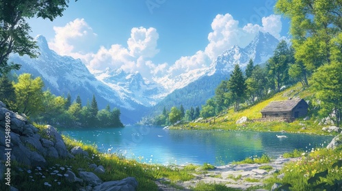 Fototapeta premium Stunning summer day by a tranquil alpine lake.