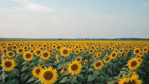 © pngking, Obraz premium Stunning sunflower meadow under an overcast sky during the winter months