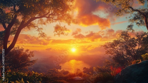 © Johannes, Fototapeta premium Stunning sunrise capturing the beauty of the sun rise as it illuminates the sky, creating a breathtaking view with vibrant colors during this magical sun rise moment.