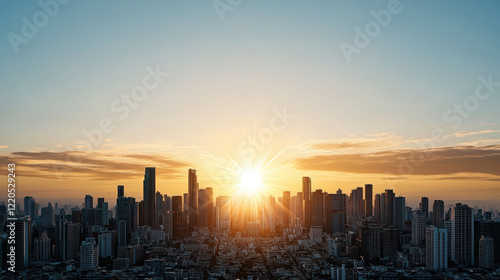 © siraphol, Fototapeta premium stunning sunrise over city skyline, symbolizing hope and renewal