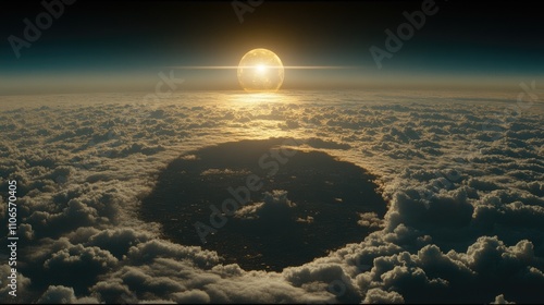 Obraz premium Stunning Sunrise Over Clouds with Unique Circular Shadow Effect