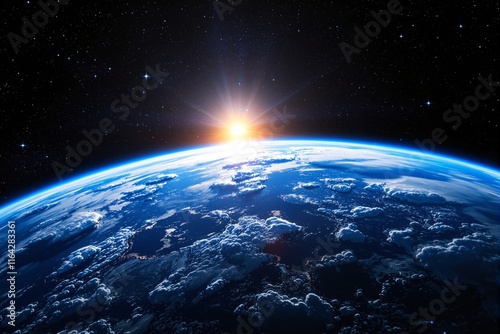 Fototapeta premium Stunning sunrise over Earth's horizon from space, with visible clouds and...