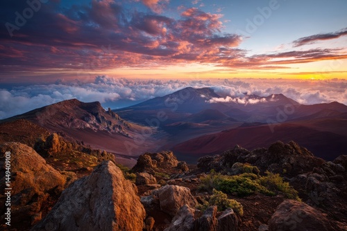 Obraz premium Stunning Sunrise Over Haleakala National Park: A Colorful Crater Landscape in...