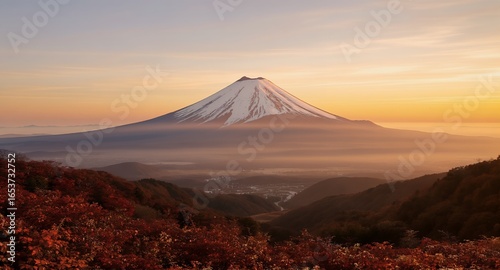© Fujika Studio, Fototapeta premium Stunning Sunrise Over Majestic Mountain Peak with Autumn Foliage