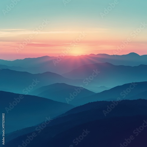 © BrandwayArt, Fototapeta premium Stunning sunrise over misty mountain ranges in the early morning