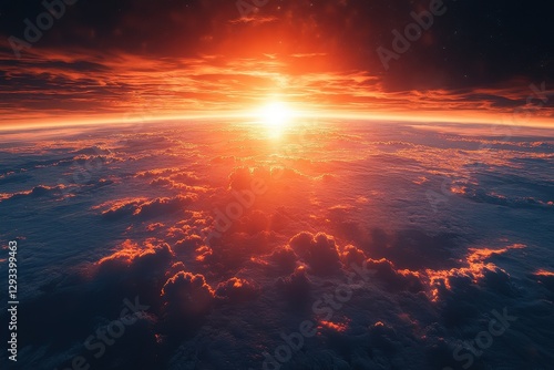 Fototapeta premium Stunning sunrise over planet Earth showcasing vibrant colors and dramatic...