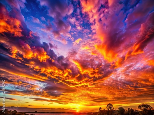 Fototapeta premium Stunning sunrise: vibrant colors and sun rays illuminate a breathtaking dawn...
