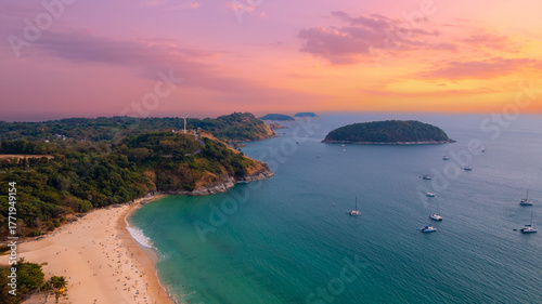 Fototapeta premium Stunning sunset at Nai Harn Beach scenic views from phuket, thailand