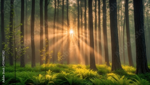 © Holo Frame, Fototapeta premium Stunning sunset in the woods.