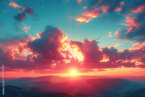 Fototapeta premium Stunning sunset over a mountain