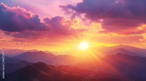 Obraz premium Stunning sunset over a mountain range