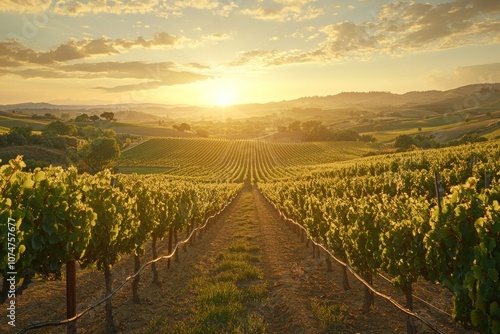 Fototapeta premium Stunning Sunset Over a Sprawling Vineyard in the Countryside