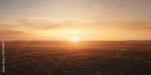 Naklejka premium Stunning sunset over a vast open field, creating a serene and peaceful...