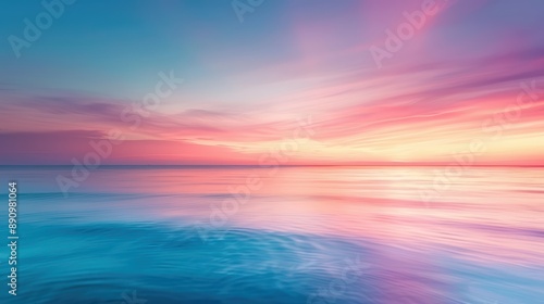 © FoxGrafy, Obraz premium Stunning Sunset Over Calm Ocean with Vibrant Pink and Blue Sky Reflections