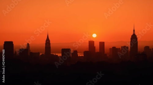 © Kitta Studio, Obraz premium Stunning Sunset Over City Skyline with Silhouetted Buildings