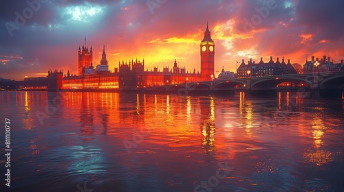 Fototapeta premium Stunning Sunset Over London's Iconic Houses of Parliament and Big Ben