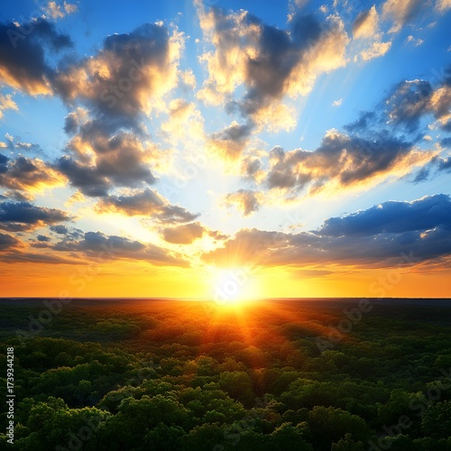© Mr, Obraz premium Stunning Sunset Over Lush Forest Aerial View