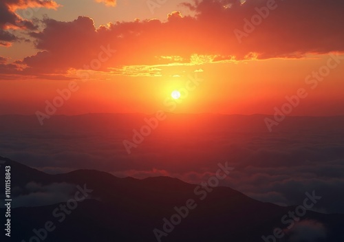 Obraz premium Stunning sunset over mountains with vibrant colors and dramatic clouds in the...