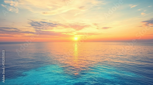 © Jari.art, Obraz premium stunning sunset over ocean, with vibrant colors reflecting on water surface, creating serene atmosphere