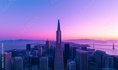 Fototapeta premium Stunning Sunset Over San Francisco Skyline with Iconic Tower Views