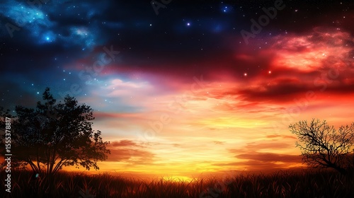 Fototapeta premium Stunning sunset over serene landscape natural environment digital artwork...