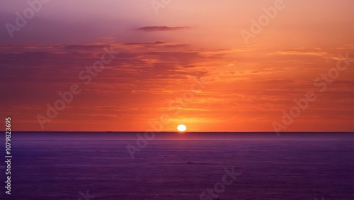 Fototapeta premium Stunning Sunset Over the Calm Ocean, Showcasing Vibrant Orange and Purple...