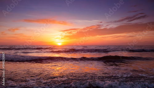 Fototapeta premium Stunning sunset over the serene ocean waves a perfect evening view