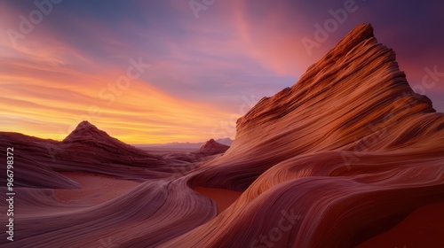 Naklejka premium Stunning Sunset Over the Wave Rock Formation in Arizona Desert with Vibrant...