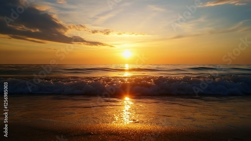 Obraz premium Stunning sunset over tranquil ocean waves with golden reflections on the...