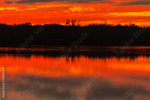 © fotodrobik, Fototapeta premium Stunning sunset reflections shimmering over the calm, peaceful waters of natures beauty